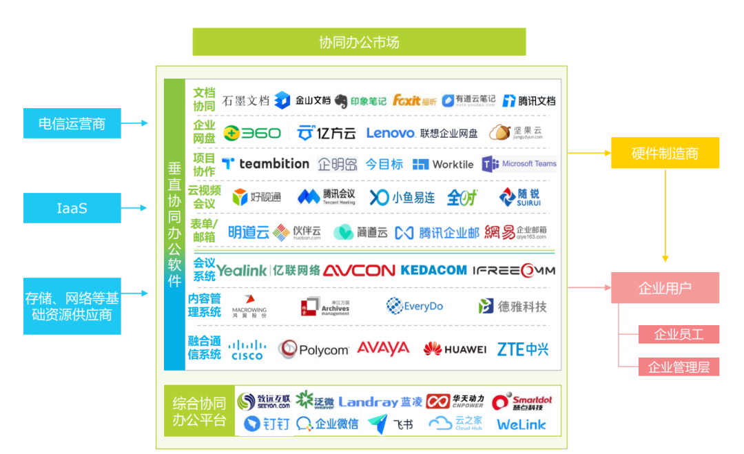 图:协同办公势力分布图(来源:艾瑞咨询)