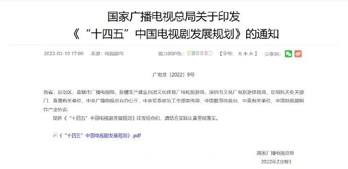 国家广播电视总局2月10日发布的《“十四五”中国电视剧发展规划》,或可印证这一判断。文件释放的几个主要信号,与当下行业现状是吻合的。