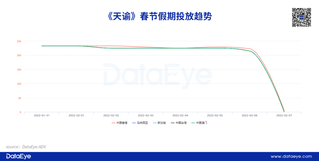值得一提的是《一念逍遥》在国内的投放并没有在12月至1月这段时间“断更”的记录,数以千计的投放以日计源源不断地注入渠道。《一念逍遥》对于其它华人市场的营销策略反而倾向于“留一手”。