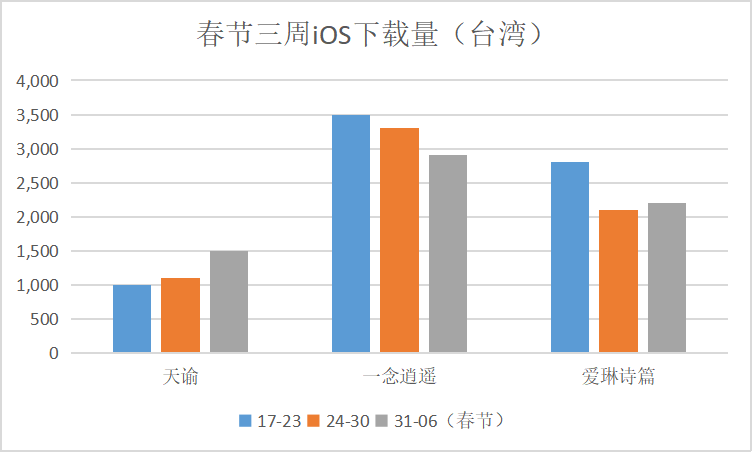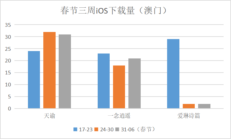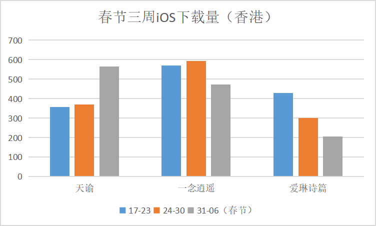 以港澳台地区为例,笔者整理了这三款游戏在这些地区春节一周及节前两周的下载量。
