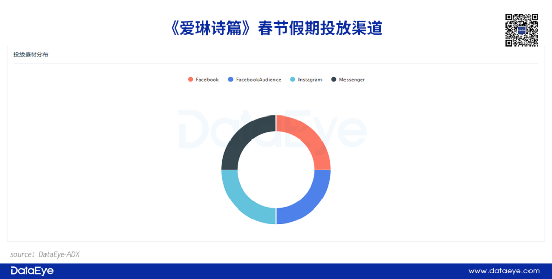 根据DataEye-ADX海外版的数据显示,《天谕》《一念逍遥》《爱琳诗篇》在Facebook系渠道的投放占比均在75%左右,剩下的25%落在了instagram上。根据Facebook的统计,早在2016年自家媒体在亚洲的用户量已名列第一,各个游戏的运营方无疑在买量渠道上对症下药。