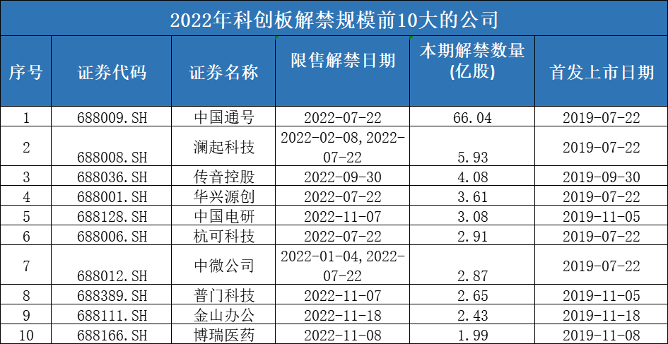 根据界面新闻记者统计,科创板上2019上市的企业达70家,三年限售期将满,2022年下半年将集中迎来原始股的解禁。