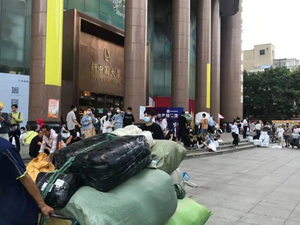 十三行里的新中国大厦人潮拥挤(图源:刘菁菁)