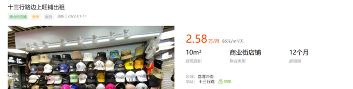 十三行路边店铺租金2.58万元/月,这个不算高(图源:安居客)