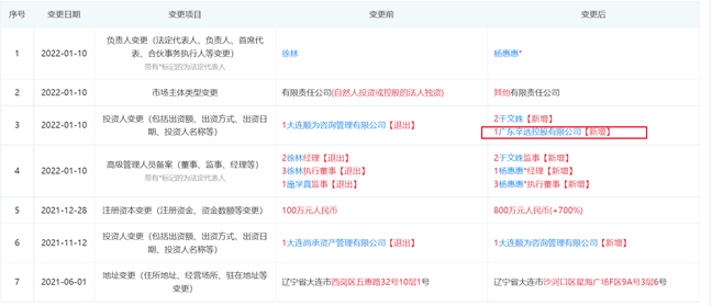 辛远控股入股大连源致广隆贸易有限公司(图源:企查查)