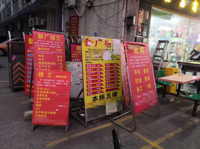 服装工业园门口摆满了招工牌,为年后做储备(来源:邓萱儿)