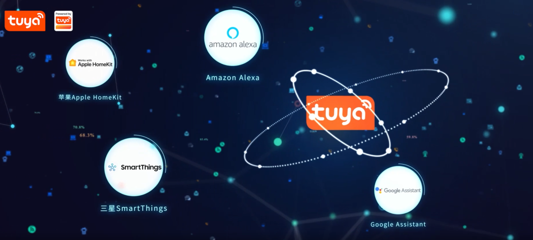 ▲通过涂鸦平台开发的产品可兼容苹果、亚马逊、谷歌、三星智能家居生态的设备
