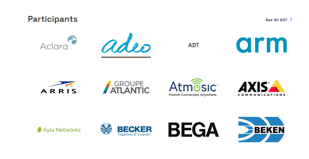 能够看到,从终端硬件巨头到家电厂商,再到芯片等核心零部件的供应商,都在Matter标准的推进者名单中。Matter标准的参与者数量达到了220家之多,相比2021年5月正式规范诞生之初的170家,又增加了50多家。