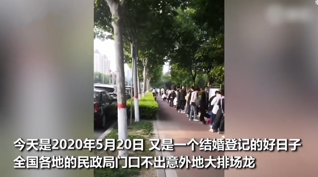 于是,这两个日子,婚姻登记处门外,也排起了长队。