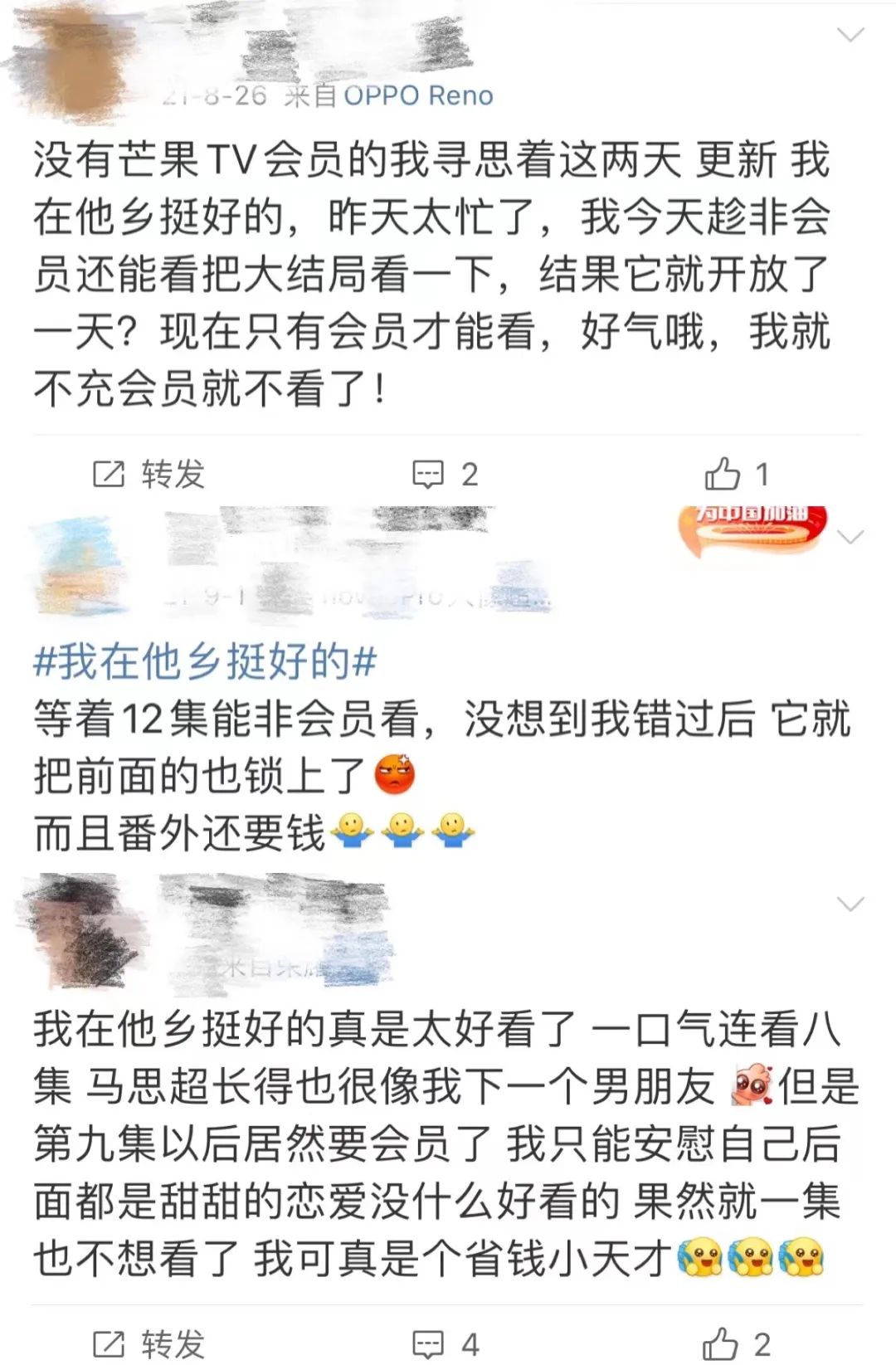 与此同时,“逼氪”、“重氪”的收费方式也造成了一定的热度限制与观众流失。对于有跻身话题爆款资质的《我在他乡》来说,这一点尤为致命。