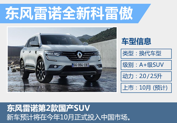 动力方面,全新一代科雷傲推出搭载2.0升和2.5升两种不同排量自然吸气发动机的车型,与现款车型相比,全新一代科雷傲的发动机动力参数进一步的提升,同时燃油经济性也进行了全面优化。全新科雷傲先期将推出5座版本未来有望增加7座车型,与目前市场上主流中型SUV的整车尺寸相近。