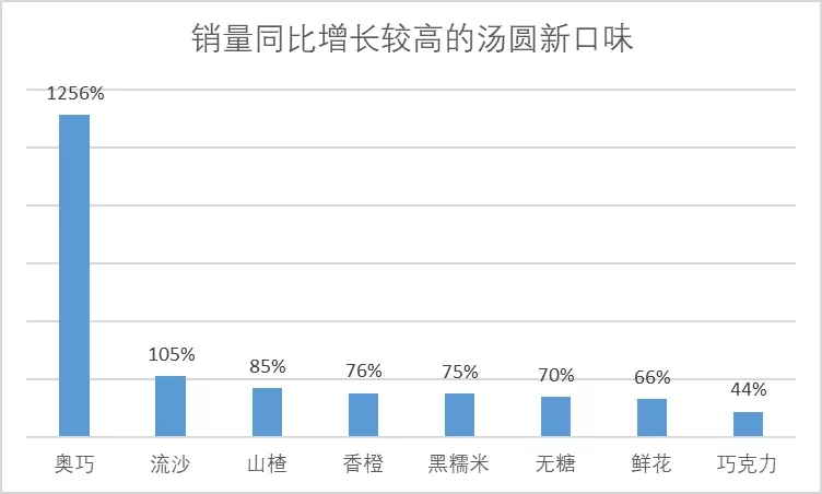 近年来,更愿意自己动手做汤圆的巧妇们也让奥巧、抹茶、芋圆等汤圆馅料的成交额大涨,同比增长超过105%。