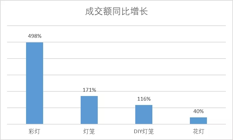 挂灯笼、放花灯、猜灯谜是正月十五“闹”元宵的传统习俗。很多人也爱用各种灯笼增加家庭的节日氛围。元宵节前,彩灯成交额同比增长近5倍,灯笼成交额同比增长171%。跟小朋友一起做灯笼也是很好的家庭活动,DIY灯笼成交额同比增长116%。