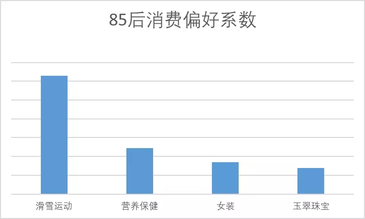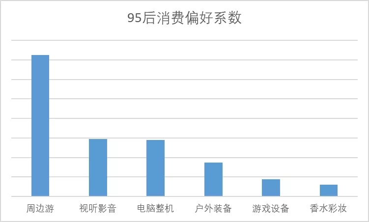 浪漫型消费有明显的年龄差异。95后在周边游、视听影音、电脑整机、户外装备、游戏设备上的消费偏好更高,对体验型、爱好型的消费偏好较高。85后在滑雪运动、营养保健、女装、玉翠珠宝上的消费偏好更高,消费的实用性更强。