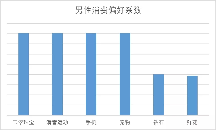 男性用户情人节前在玉翠珠宝、滑雪运动、手机、宠物、钻石、鲜花的消费偏好更高,送大件、营造浪漫氛围的属性更强。女性用户情人节前在演出票务、滋补营养品、电脑整机、体重管理、猪牛羊肉、安全自驾的消费偏好更高,体现出浓厚的生活气息和温暖的关怀之意。