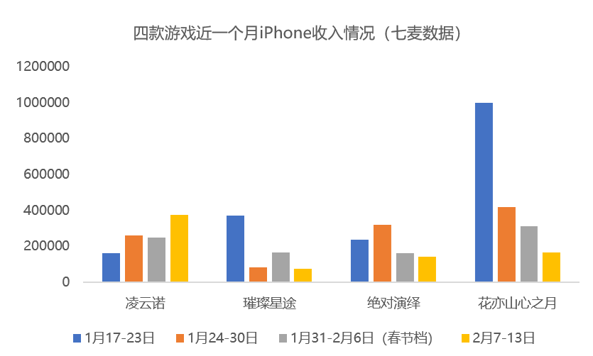 从市场表现来看,《绝对演绎》和《璀璨星途》两款游戏上线“蜜月期”结束后,市场表现颓靡,《花亦山之月》市场表现可谓超预期。