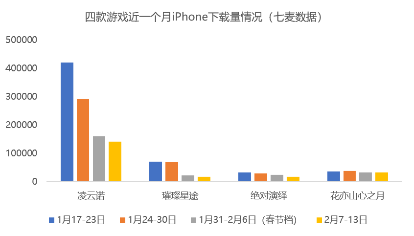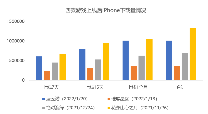 由于《凌云诺》上线时间不足以一个月,我们进一步比较相同时间段的下载量情况。