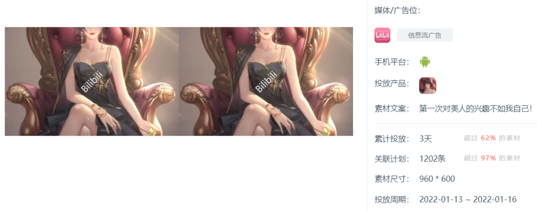 而《璀璨星途》和《绝对演绎》两款游戏计划使用TOP1为图片素材,且均投放于B站。