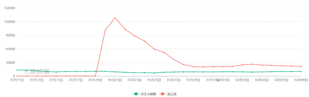 图:浮生为卿歌VS凌云诺下载量趋势(七麦数据)