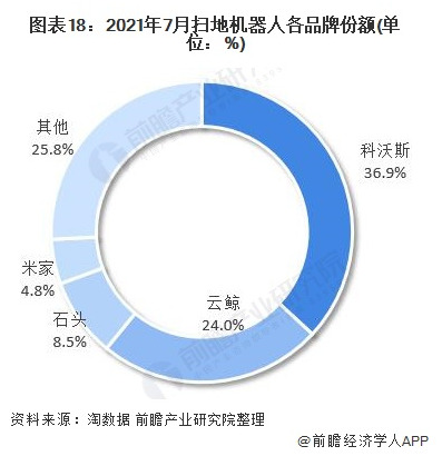 据前瞻产业研究院的《2022年中国扫地机器人行业全景图谱》,截至2021年7月,科沃斯、云鲸、石头、米家四大品牌的扫地机器人合计占有了约75%的市场。