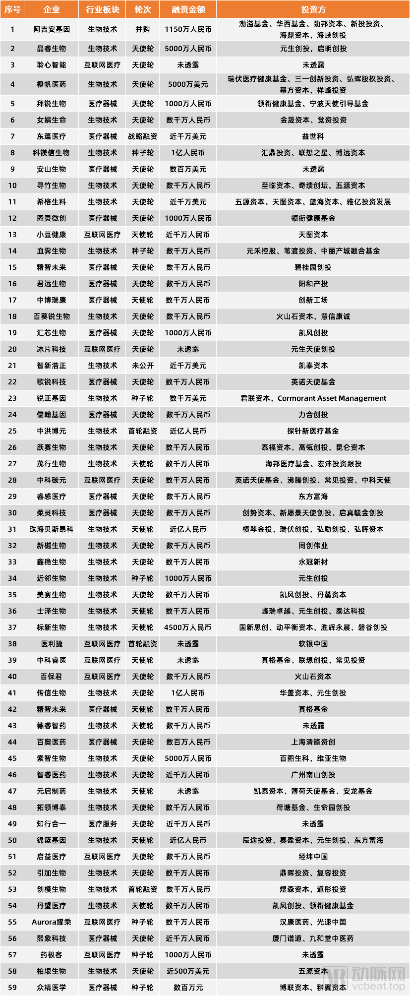 2021年早期项目融资事件表 动脉网制
