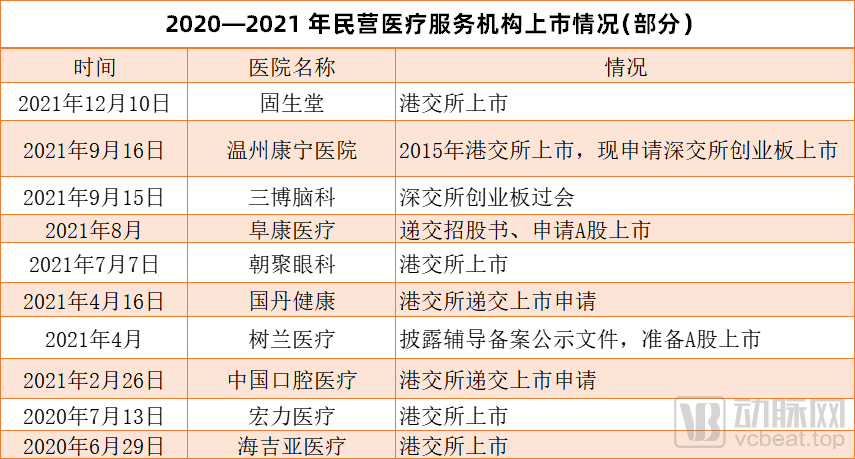 我国民营医疗服务领域正在发生结构性转变。纵观2021年,医疗服务领域超10家企业提交上市申请或成功IPO。