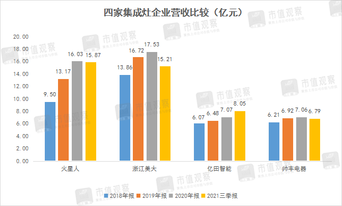 目前,国内登陆资本市场的集成灶公司有四家,分别是2012年上市的浙江美大以及2020年同一年上市的帅丰电器、亿田智能和火星人。