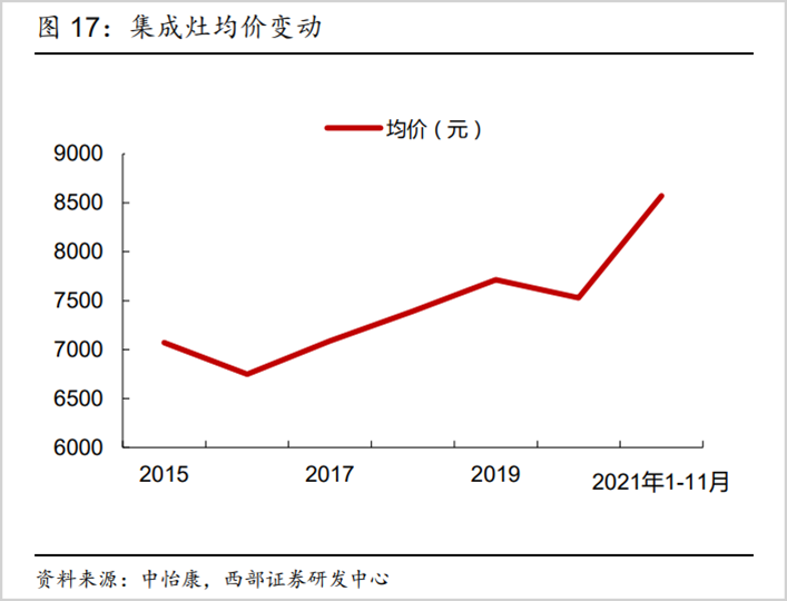 据中怡康统计,2020年,国内集成灶均价为7530元,2021年1-11月均价为8571元,已连续5年提升。
