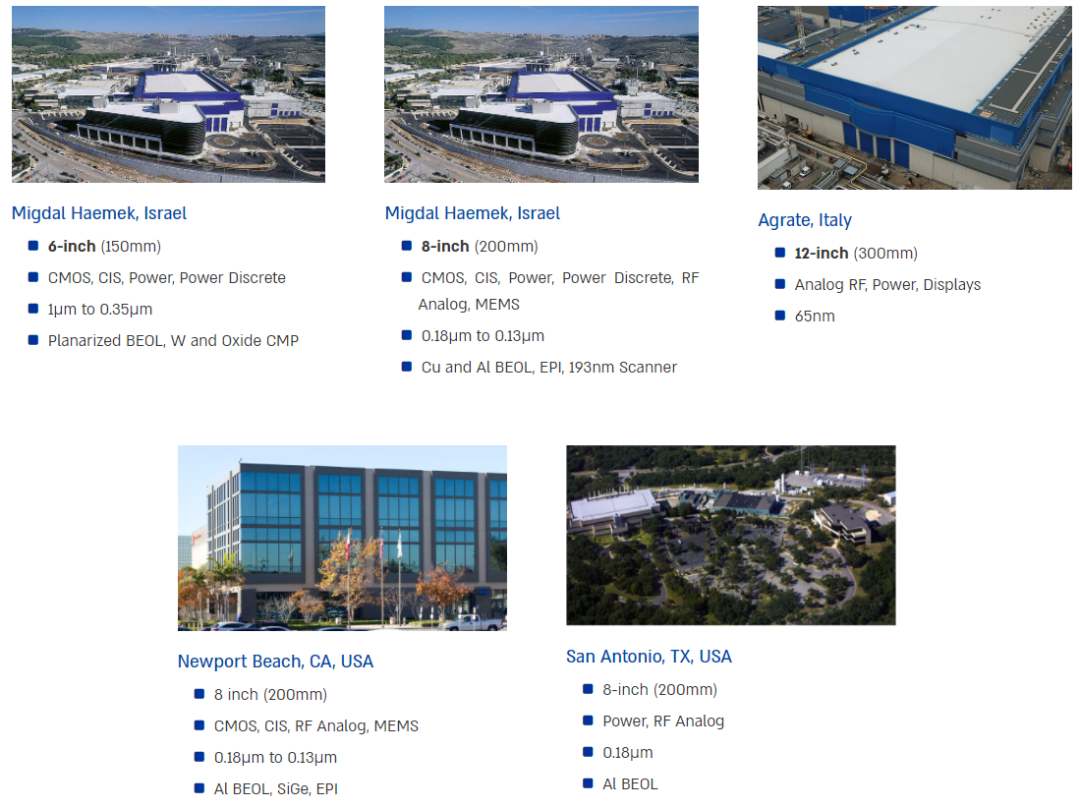 高塔半导体位于美国、以色列、意大利的晶圆厂