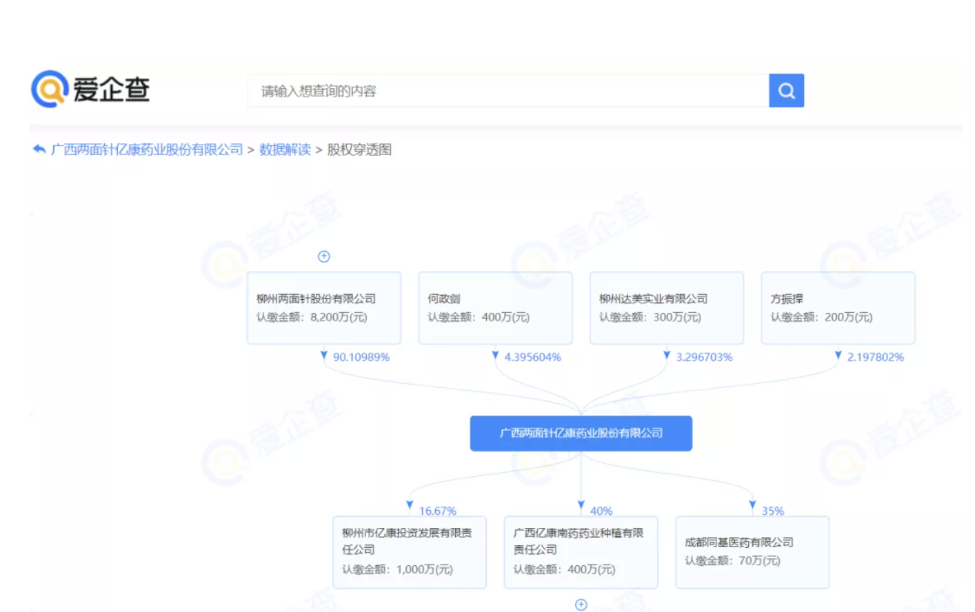 据爱企查数据显示,两面针仍保留了医药业务,持有亿康药业超90%的股权。