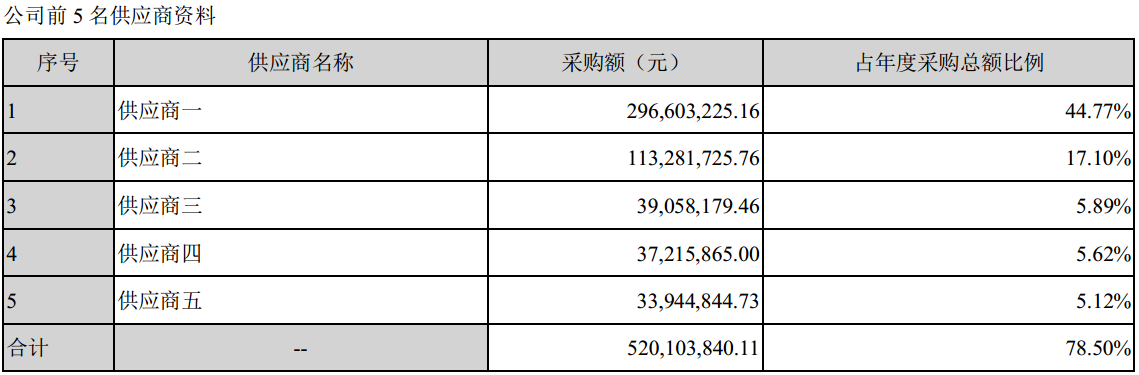 公开信息可知,中颖电子是无晶圆厂的纯芯片设计公司。该公司曾直言,晶圆是公司产品主要原材料,晶圆加工对技术及资金规模的要求极高,合适的晶圆代工厂商选择范围有限,导致公司的晶圆代工厂采购较为集中。2020年年度报告显示,中颖电子报告期内前五名供应商合计采购额5.2亿元,占2020年采购总额的78.5%;其中,第一大供应商采购额近3亿元,占年度采购总额比例为44.77%。