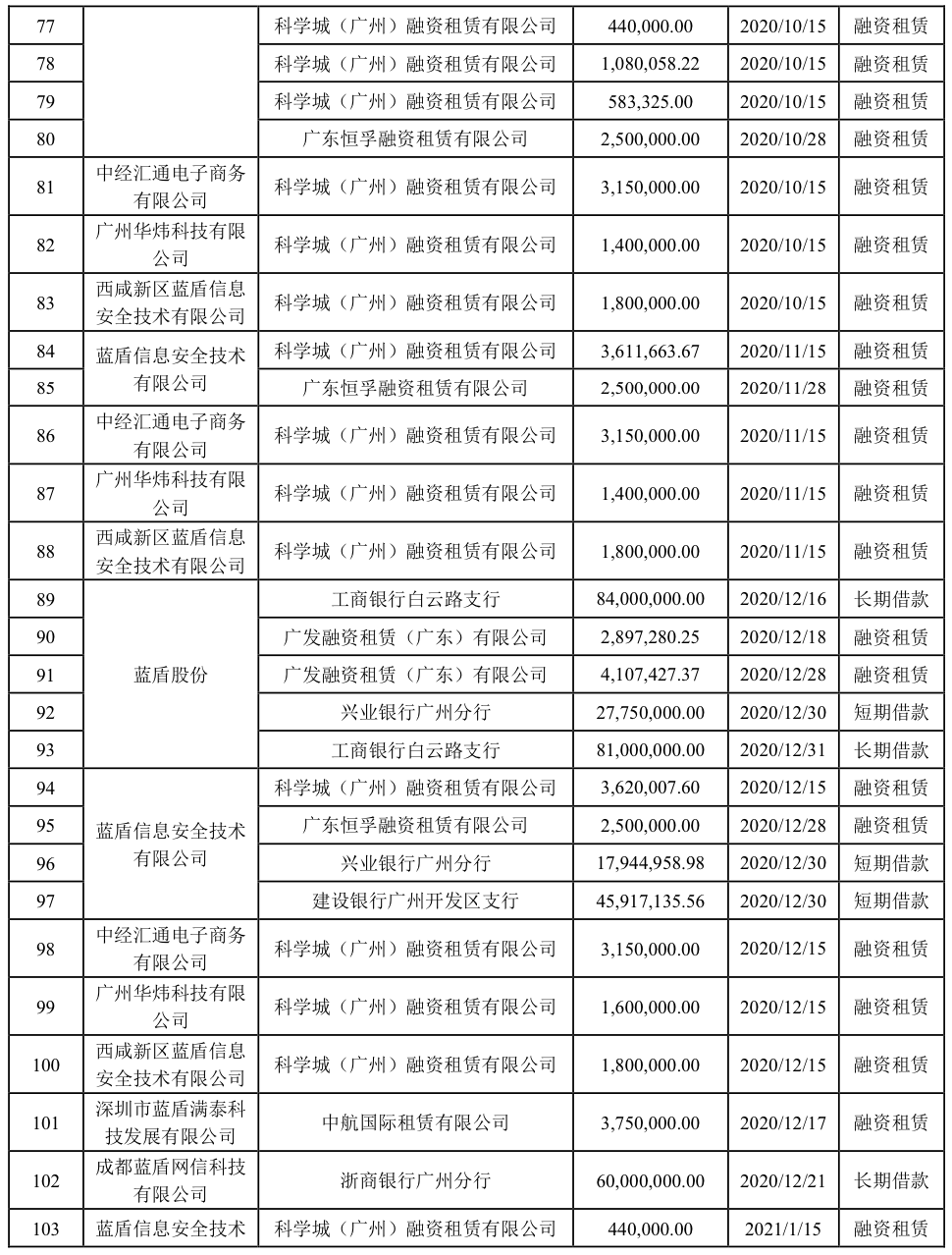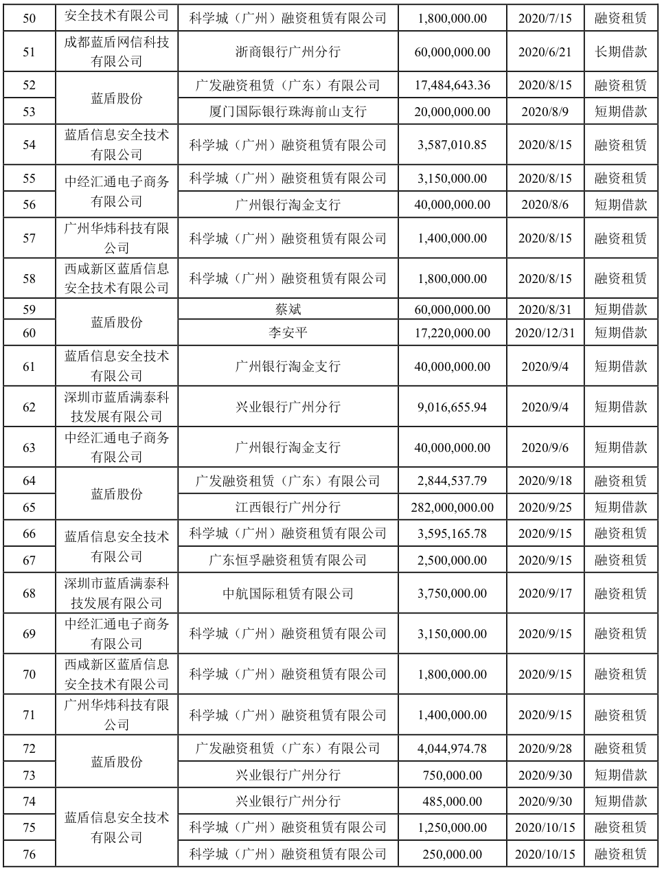 界面新闻获悉一份蓝盾股份累计债务逾期未偿还清单,债务合计达147项,金额合计超过了25亿元,情况不容乐观。另一方面,蓝盾股份截至2021年12月31日有银行账户数量为382个,被冻结账户占公司总银行账户数量的18.06%,被冻结资金占公司货币资金总额的56.86%。