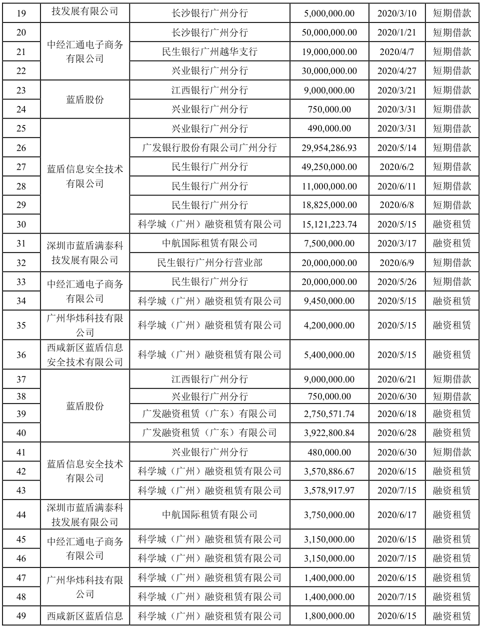在2月9日公告中,蓝盾股份承认自己自2020年以来,受资金流动性不足等因素影响,公司偿债能力及盈利能力受到削弱,陆续出现债务逾期、涉及诉讼等经营风险;同时,由于涉诉事项被申请诉前财产保全,公司部分银行账户、资产已被法院冻结/查封。上述情况对公司日常生产经营产生较大不利影响,公司2021年度可能存在被年审机构出具包含“持续经营能力存在不确定性”审计报告的情形。而根据相关规定,上市公司出现“公司最近三个会计年度扣除非经常性损益前后净利润孰低者为负值,且最近一年审计报告显示公司持续经营能力存在不确定性” 的情形,公司股票交易可能被深交所实施其他风险警示。