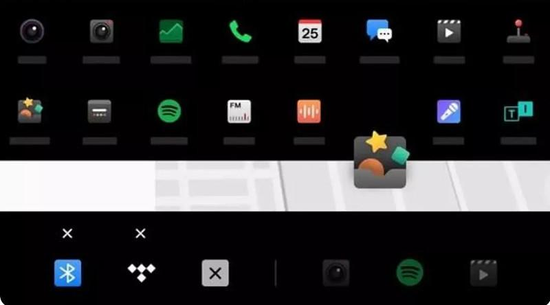 特斯拉车载系统触屏界面底部出现的可自定义图标栏