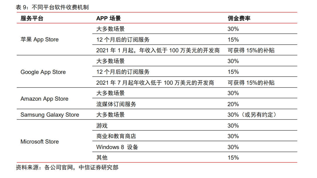 其实,不管是基于闭源操作系统IOS的苹果APP store还是基于开源操作系统安卓的Google (安卓)应用商店,佣金费用都是其收入的重要一环。