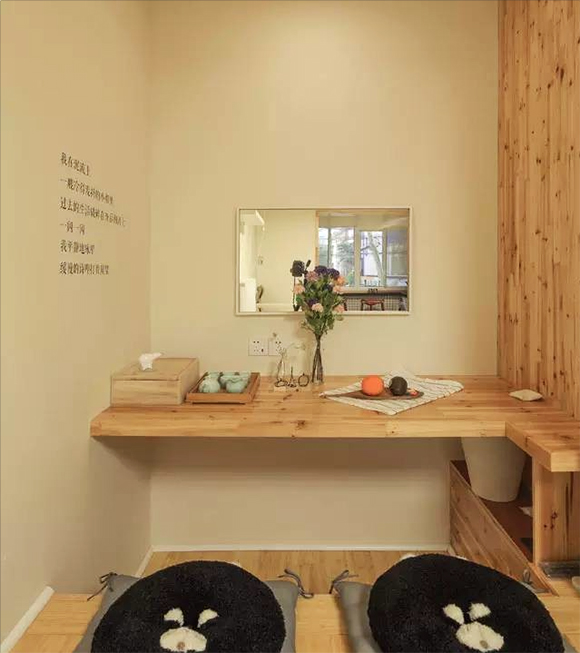 她将稍大的房间用作出租,采用榻榻米设计,还配有电影播放器,将白色的幕布拉下,房间便成为了临时电影院。房间阳台拥有一面“绿墙”,绿墙的下部放置了一个迷你洗衣机,供住客专用。