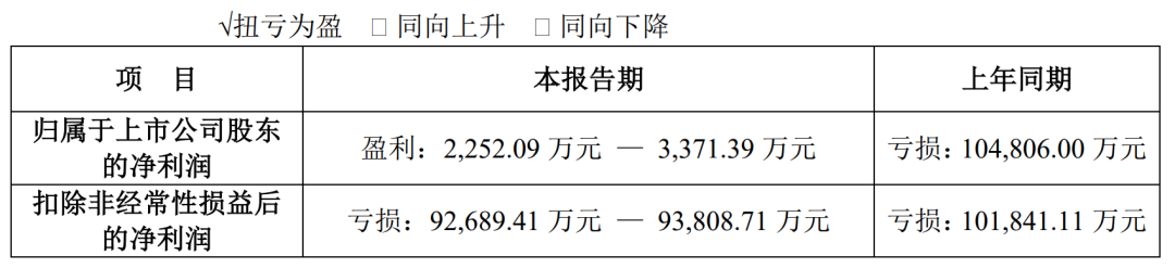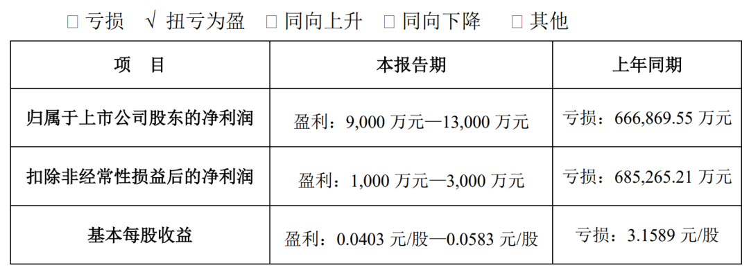 业绩:报告期内,预计归属于上市公司股东的净利润为0.9亿-1.3亿,但扣除非经常性损益后的净利润仅1000万-3000万。不过相较于去年同期近67亿的净亏损,公司整体已扭亏为盈。