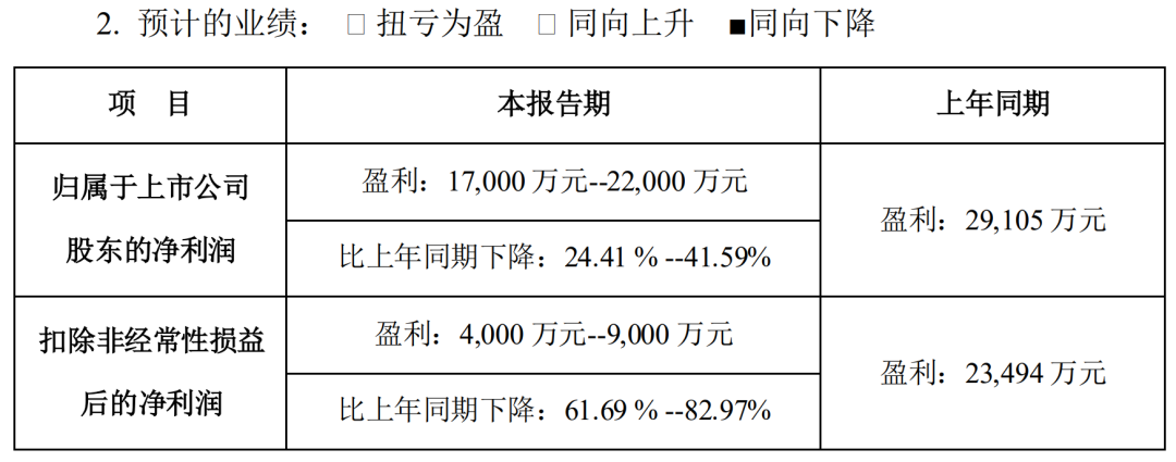 业绩:报告期内,预计归属于上市公司股东的净利润为1.7亿-2.2亿,同比下降24.41%-41.59%,扣除非经常性损益后的净利润为4000万-9000万,同比下降61.69%-82.97%。