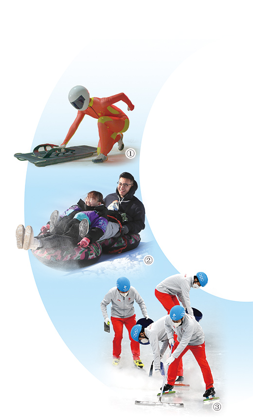 图①:钢架雪车国家队队员在陕西省安康市秦岭四季滑雪馆训练。