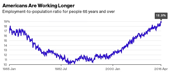 与此同时,活得更长更健康,也使美国人拥有更长的职业生涯,而使退休延迟。