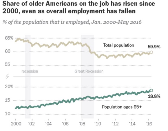 皮尤研究中心的分析还显示,老年人就业比例上升与总体人群就业比例下降形成鲜明对比。美国老年人理事会(National Council on Aging)也预测,到2019年,在55岁以上的老年人中,40%的人仍将继续工作,这部分人在整体劳动人口中的比例将超过25%。这表明,随着社会的老龄化,老年人将在美国经济和全球市场中扮演越来越重要的角色。
