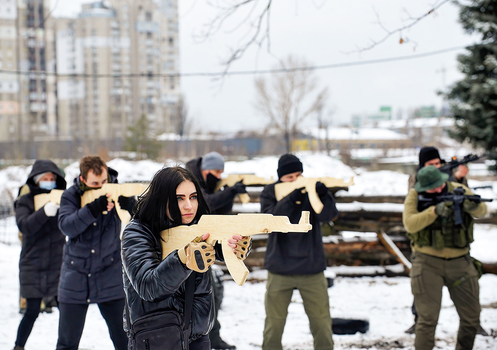 乌克兰和俄罗斯之间的紧张关系处于多年来的最高水平,乌克兰平民也参与到军事训练中,其中不乏女性的身影。从儿童到白发苍苍的老年女性,她们接受医疗训练或是端起冲锋枪,投入到面向平民的公开训练之中。