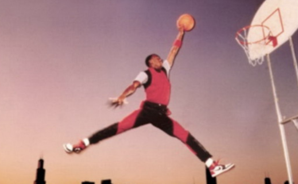 一开始迈克尔·乔丹对Air Jordan 1是拒绝的,在他眼里,只有小丑才会穿那样的鞋。训练的时候,乔丹的队友同样认为,AIR JORDAN1实在太难看。最终在Nike的斡旋下,乔丹才接受了AIR JORDAN1。在白色球鞋统治篮球赛场的时代,AIR JORDAN1主推却是乔丹所在的芝加哥公牛队(Chicago Bulls)队服红白配色,十分吸睛。Nike还花重金打造了飞人乔丹广告,乔丹高高跃起,缓缓划过天空,完成最其经典扣篮动作,并配以那句极为经典的“谁说人类不能飞翔(Who Said Man Was Not Meant To Fly)?”