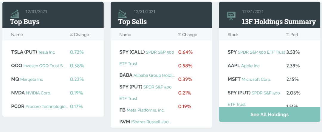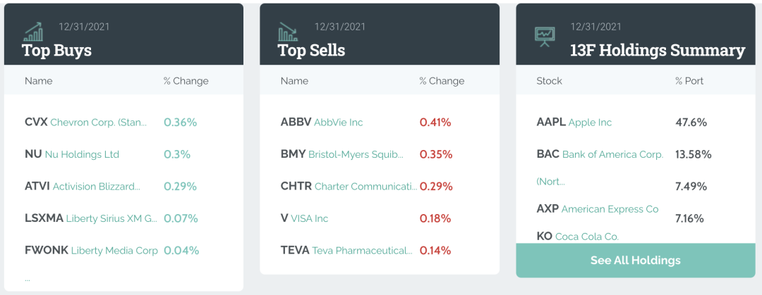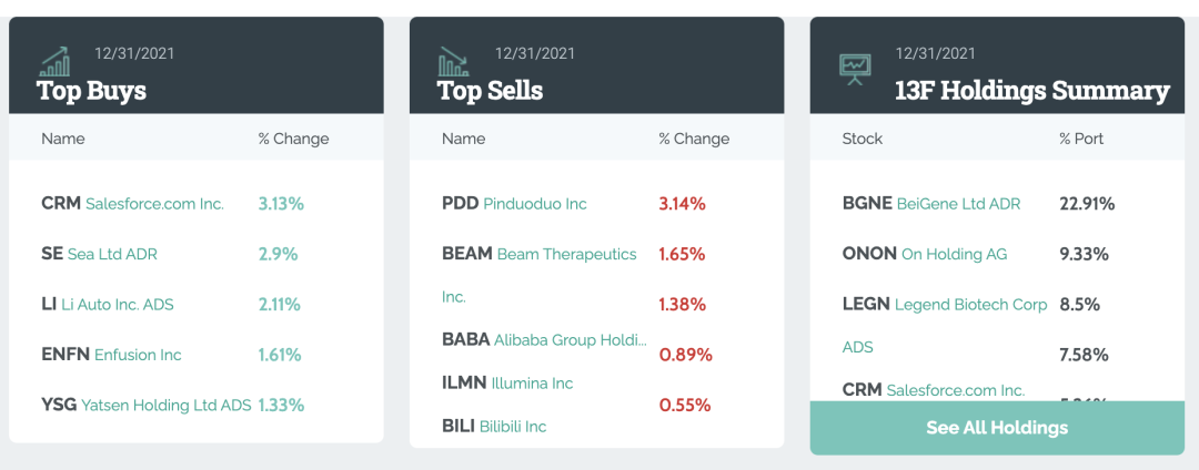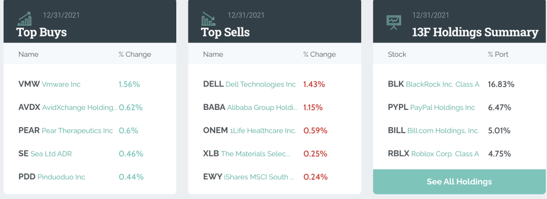 对于喜欢“抄作业”的投资者来说,“股神”巴菲特、各大主权基金、华尔街投行们的持仓和调整情况不容错过。尤其是在2021年中概互联网股票承压的情况下,是趁机抄底还是保持距离,大机构的动作有很高的参考价值。