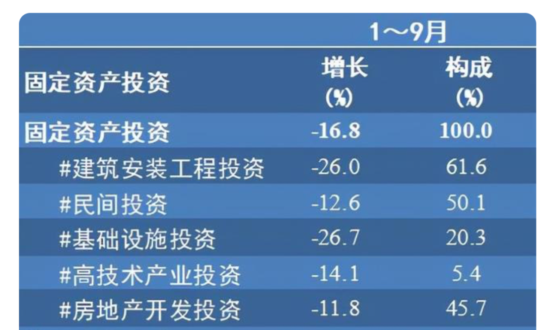 其原因与昆明类似。比如,前三季度,贵阳固投下滑了16.8个百分点。民间投资、基础设施投资、高技术产业投资、房地产开发投资均出现负增长。