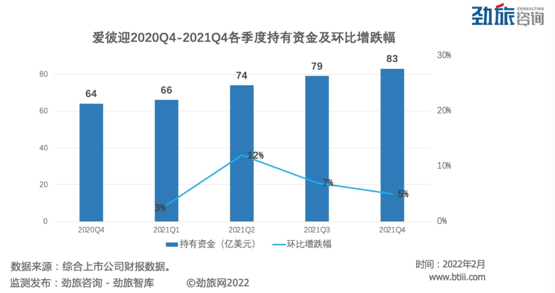 2021年Q4,爱彼迎保有的货币资金达到83亿美元,保持环比上升的态势,简而言之,爱彼迎并不缺钱。充足的资金使得其能够有效应对各类突发风险,特别是疫情造成的退订和赔偿。