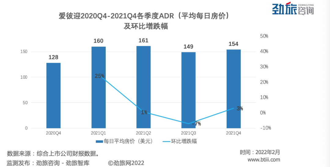 2021年,爱彼迎的ADR保持在156美元/季度。