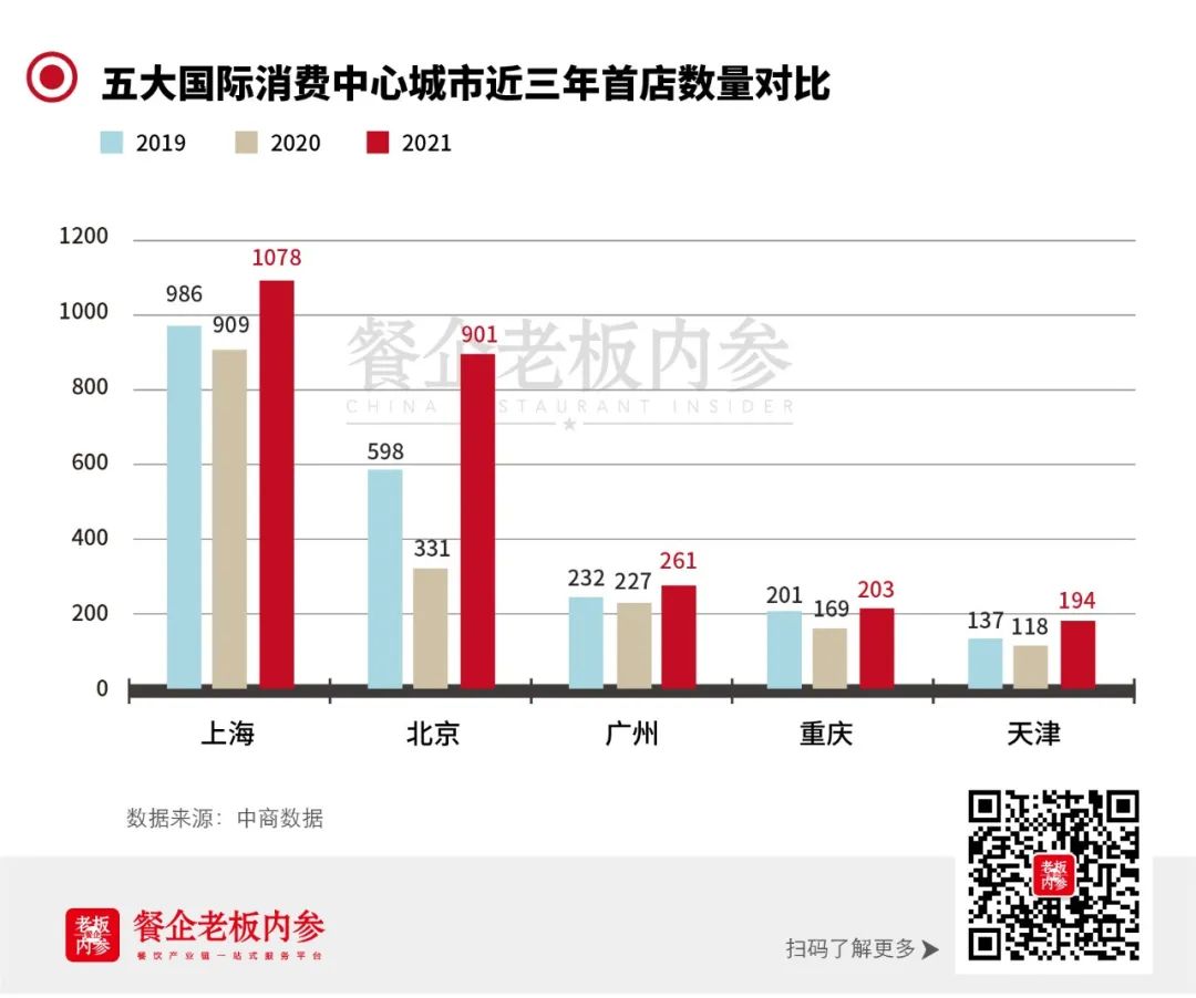 上海是当之无愧的首店收割机,去年开了1078家首店。北京猛地开出了901家首店,将近2020年的3倍。广州、重庆、天津首店数量也持续走高,分别开出了261、203、194家首店。