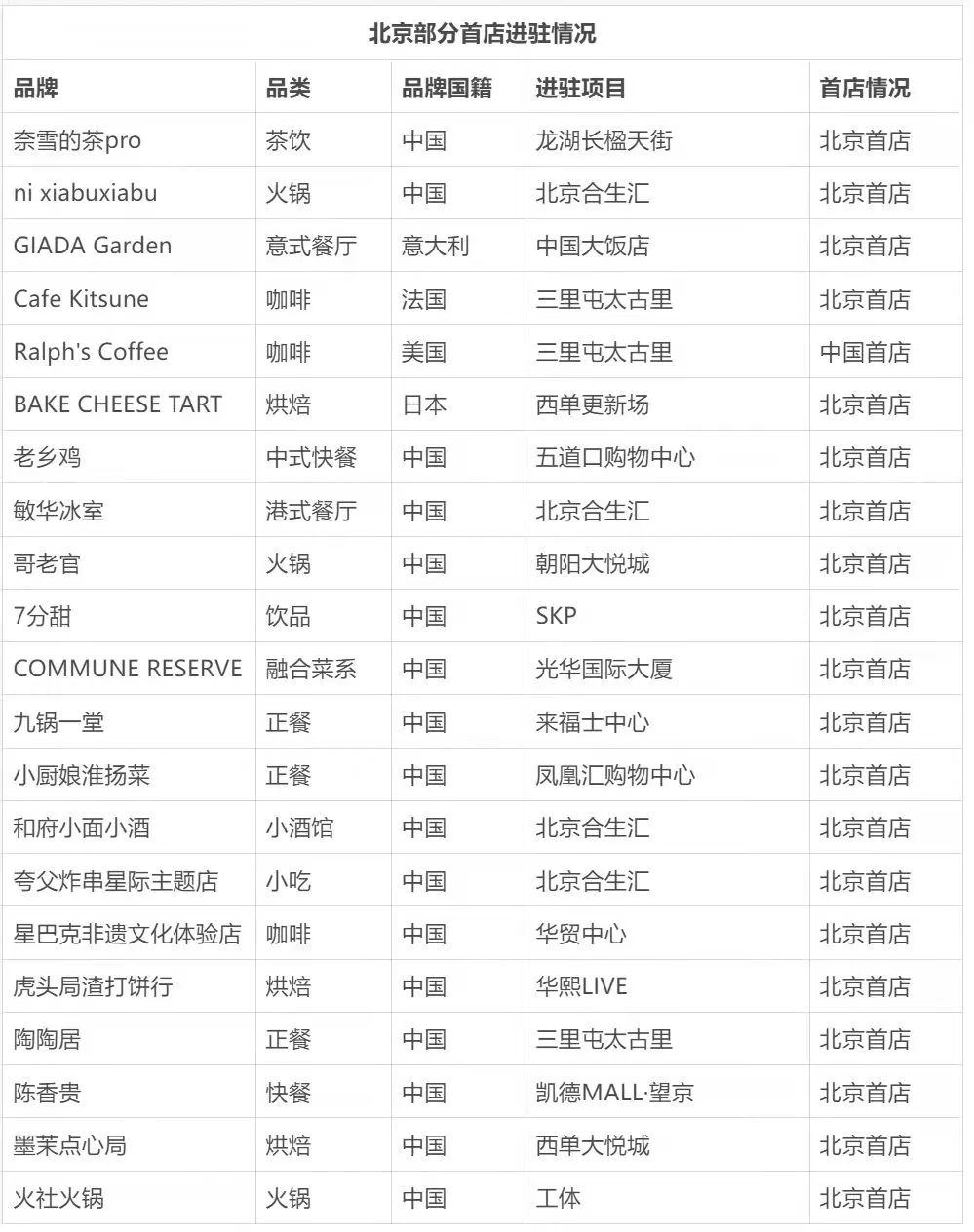 去年资本入场助推拓店速度,一批新消费品牌也很快跨区域开出首店,上海、北京、深圳、杭州、成都等地是新消费品牌制造地。以北京为例,本土品牌强势崛起,陶陶居、小放牛、墨茉点心局、楠火锅等来自全国各地的网红品牌扎堆进京。