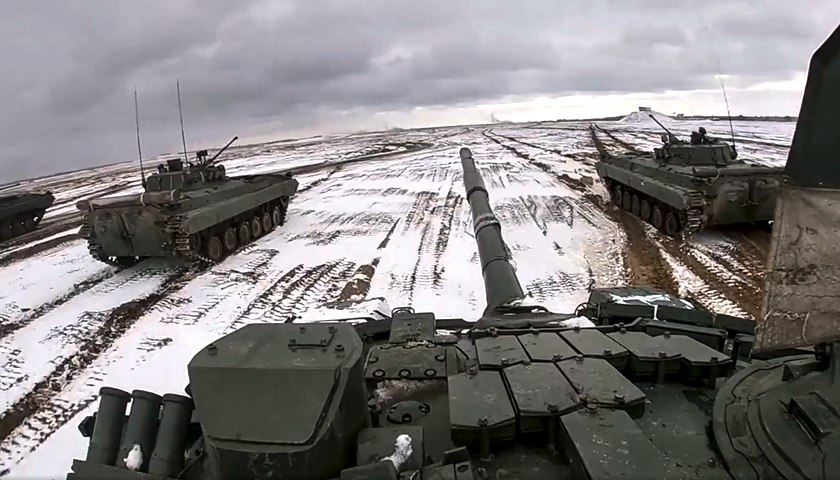 宣布从白俄罗斯与乌克兰边境撤出部分士兵后一天,俄罗斯再宣布从克里米亚撤出演习士兵。俄罗斯国防部放出视频,显示搭载坦克、步兵战车的火车正在离开克里米亚。